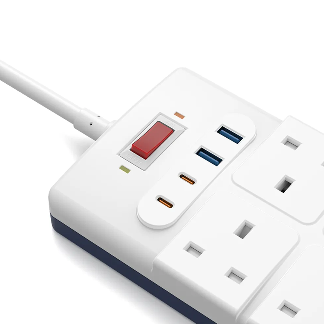 The WiWU PS842 is a powerhouse with 12-in-1 versatility, including 2 Type-C (PD 20W), 2 USB-A (3A), and 8 AC outlets.